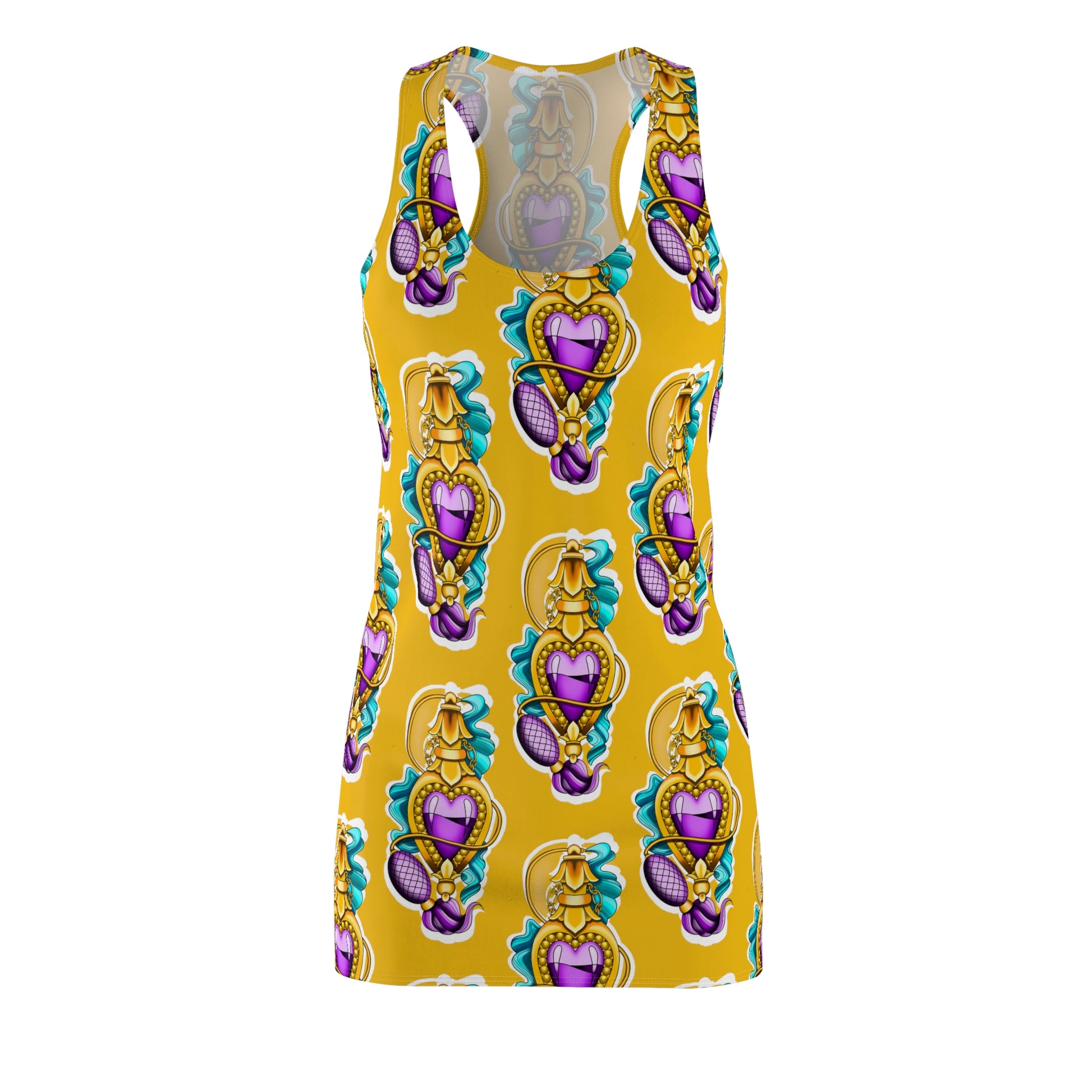 A feminine and stylish, yet really comfortable dress. This high quality AOP racerback dress is appealing from every angle. Inspired by the freedom of creativity, it will instantly become everyone's alltime favorite.